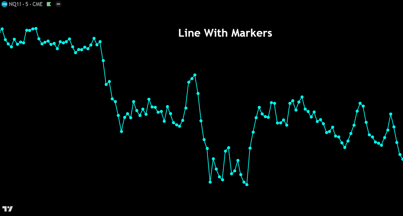 Line With Markers – This chart type functions identically to a standard line chart but adds small circular markers at each data point (closing price) along the line. The markers make it easier to identify the exact location of each period’s close, which is particularly helpful on higher timeframes or when zoomed out on a chart. It offers a subtle visual upgrade that helps traders pinpoint specific price levels without adding unnecessary complexity.